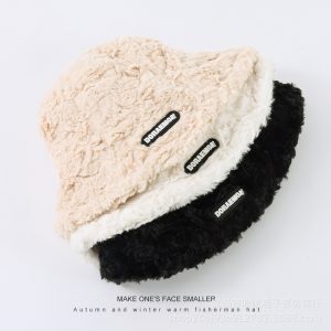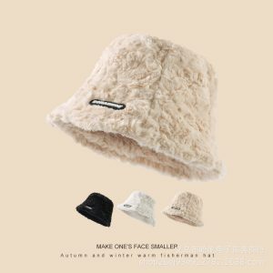 Autumn/Winter Faux Fur Black Label Letter Fisherman Hat Women’s Bucket Hat Trendy Fashionable All-Match Plush Warm Basin Hat.