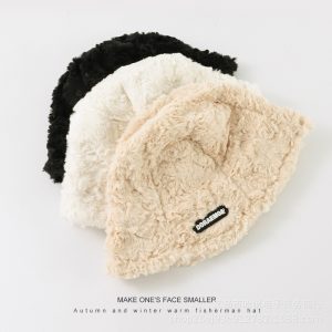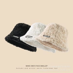Autumn/Winter Faux Fur Black Label Letter Fisherman Hat Women’s Bucket Hat Trendy Fashionable All-Match Plush Warm Basin Hat.